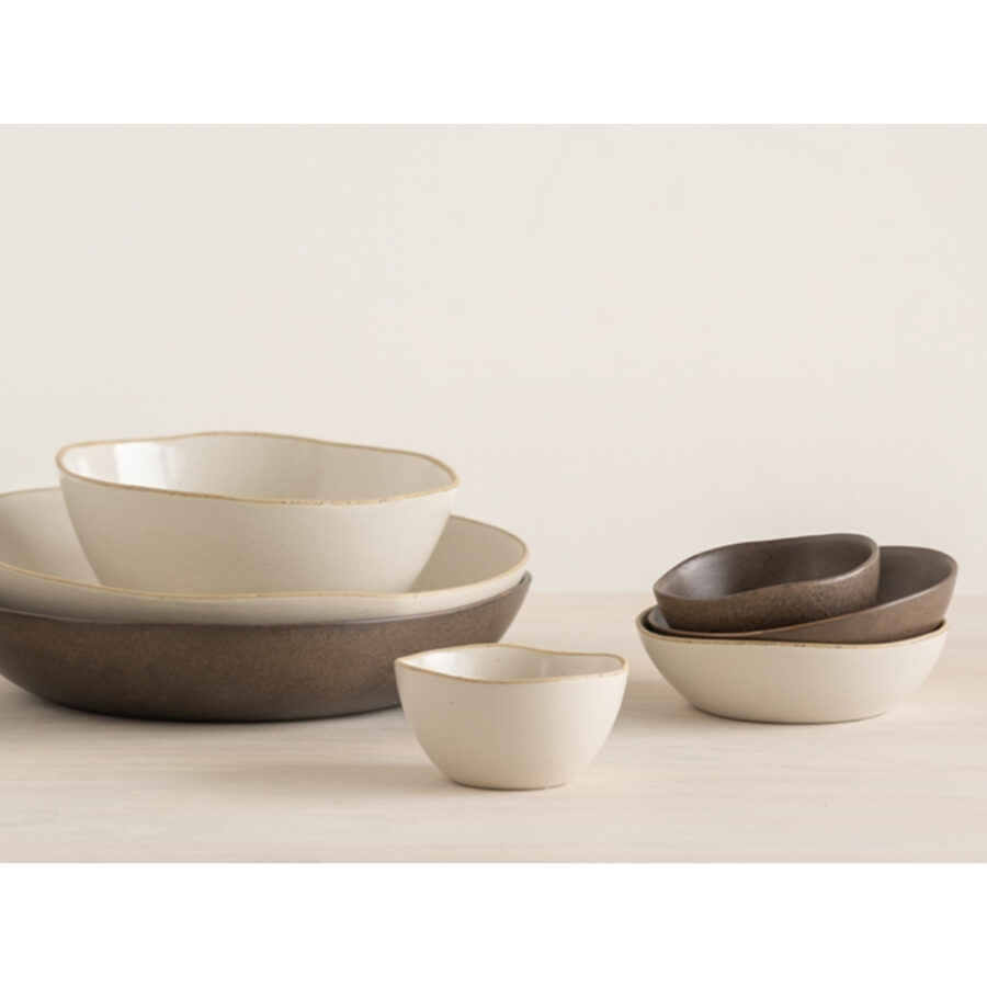 "Kunst is iets absoluuts, iets positiefs, dat kracht geeft zoals voedsel kracht geeft. Terwijl creatieve wetenschap een mentaal voedsel is, is kunst de bevrediging van de ziel." – Hans Hofmann | Urban Nature Culture’s Ateljé-serie toont dat alledaagse basics niet saai hoeven te zijn. De Tapas Bowl uit de serie is een mooi voorbeeld van vakmanschap. Met zijn matte, beige en ambachtelijke afwerking draagt hij een reactieve glazuur die hem echt tot leven brengt. De rand toont het oorspronkelijke aardewerk, waardoor de oorsprong ervan zichtbaar wordt en precies laat zien waarom de serie kunst en functionaliteit in evenwicht brengt.